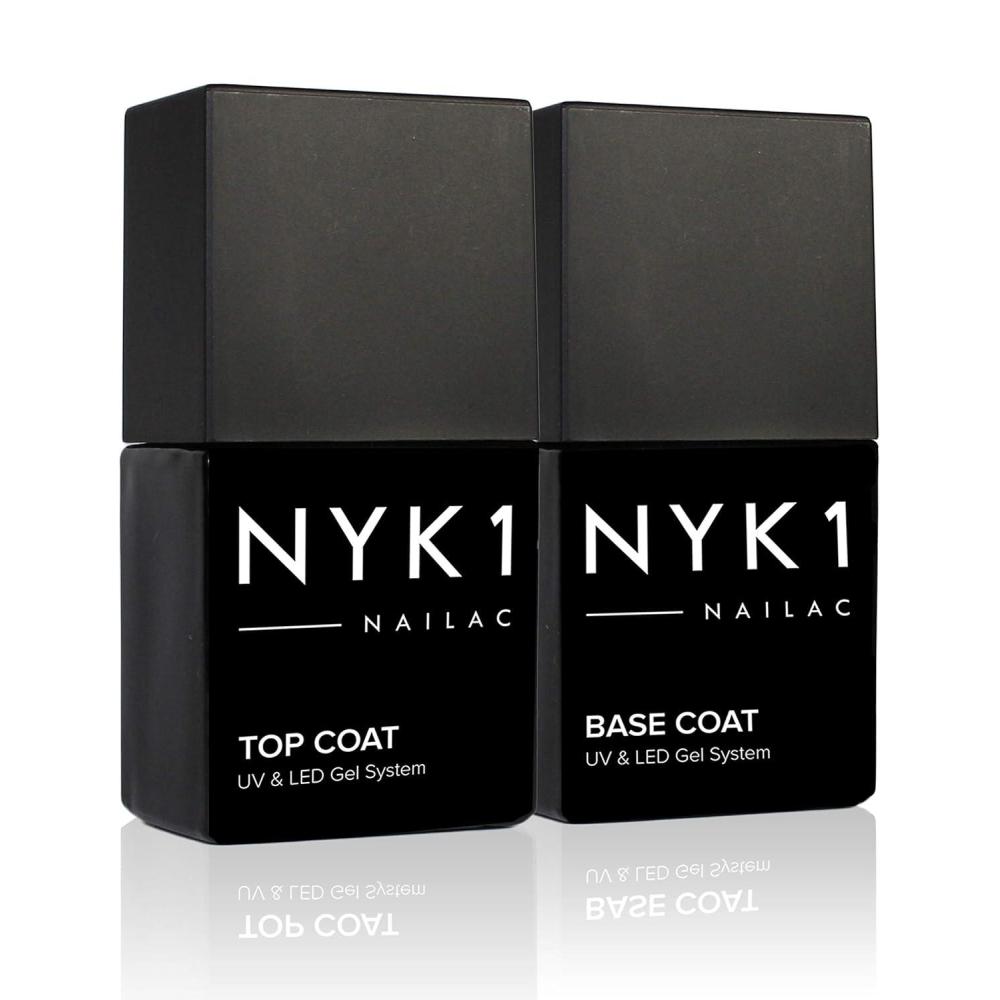 imageNYK1 Nailac Professional Base Coat and Top Coat Clear Gel Nail Polish  Salon Quality Soak Off LED and UV Nail Gel  Shellac Compatible Pack of 2 10ml